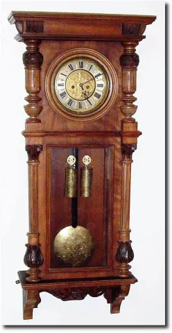 C.1875, Austrian, 2-Weight "Vienna Regulator' in a walnut case of"double door' style, LESS top. Note the well made movement is of the same period as the case, but is not original to the case. Despite this, it is a very decorative clock, and the dial, weights and pendulum all have the same etched and gilded pattern. Height 40'