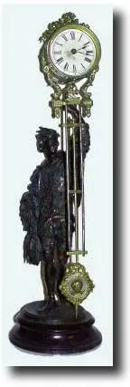 This is the desirable small can model, with original 3" dial (minor rust stain on paper dial near center - from hour hand). The statue retains outstan...