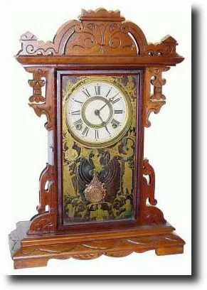 C.1890, E.N. Welch Mfg "NANON", walnut gingerbread clock