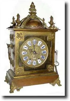 Philadelphia (signed on dial in porcelain cartouche), profusely decorated with applied fleur-de-lis on front and sides (even heavy fleur-de-lis handle...