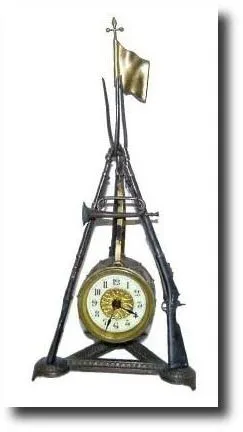 in good original condition (most all gilding worn off). Note army themes: three stacked rifles (rolling blocks, complete with slings), regiment flag, ...