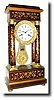 in good condition. This clock has been recently restored, the case refinished and the original gilding sharp and bright. The porcelain dial is perfect, and with signature: Villey Aine, a` Vienne. The well made round French movement strike the hours and halves on a bell; cast grid pendulum with floral center. The rosewood veneer case has nice quality floral inlay; minor repairs and some old chips filled in, but still quite good. Height 20 inches $700-900