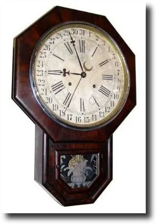C.1895, Waterbury, 12 Inch Octagon Drop Calendar clock