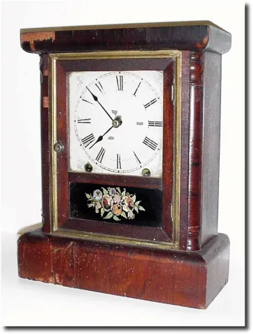 C.1875, New Haven Clock Co., 8-Day Cottage, a once elegant shelf clock, now with the veneer all loose.