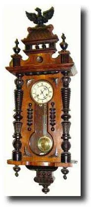 in walnut and in good original condition. The bezel is loose on the dial plate, but otherwise this is complete and sound and with original factory har...