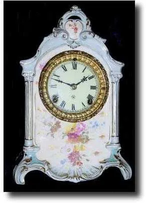 C.1905, Ansonia, Royal Bonn "La Mayenne" china mantel clock