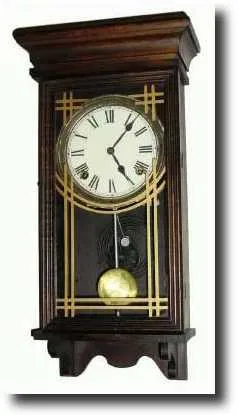 in excellent original condition. Retains original dial, hands, pendulum, tablet, label and finish. 8-day time and strike. Another great beginner's clo...