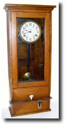 a large oak cased 8-day "punching in" clock. The robust double spring time movement at top made under contract by Seth Thomas, and the lower printing ...