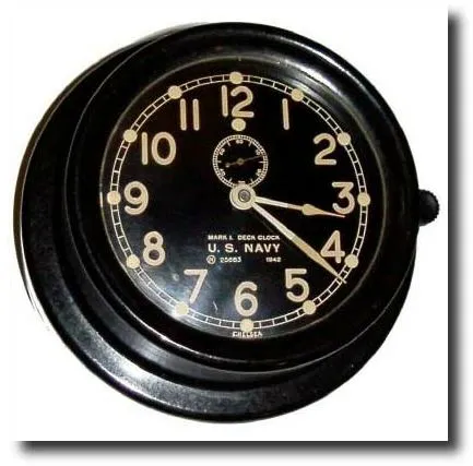 serial number 25663, MARK I DECK CLOCK, complete with original wall bracket. Other than normal discoloration of the luminous hands anda hour markers, ...