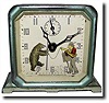 animated alarm clock, in generally good original condition with superb dial. The light metallic green case shows wear, and is missing its' 4 rubber cu...
