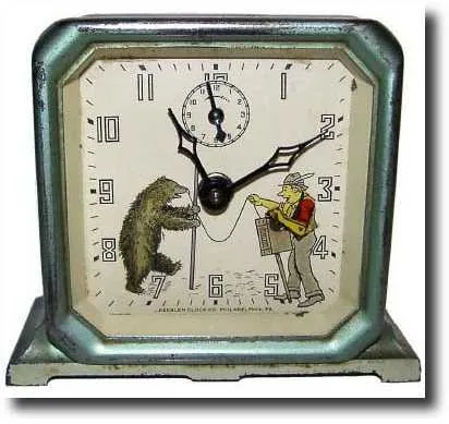 C.1949, Keebler Clock Co., Philadelphia, Pa, Organ Grinder and Bear animated alarm clock,