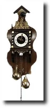 Dutch Zandam Wall Clock, with lots of brass applications, including pear shaped weights. Eight day clock with hour and half hour strike. Visible pendu...