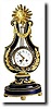 with ormolu mounts. This clock is on the small side, with 3" dial and 4" brilliant ring (ring swings from side to side when clock runs). The ormolu retains original frosty yellow gilding, and the detail on the mounts is very fine. The porcelain dial is excellent with polychrome floral decorations. Note the ring hangs a tiny bit lower that we are used to seeing, and it appears that a shorter suspension spring would correct this. See also hand chased "lyre" hands that retain their original gilding. A nice little clock; Height 17" $4000-5000