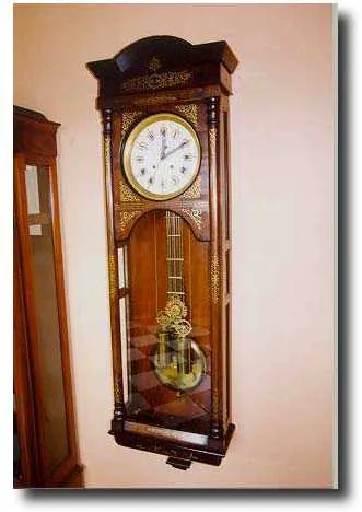 A very fine rosewood wall regulator with extensive brass inlay.This clock has highly detailed scroll work and stringing all over the figured rosewood ...