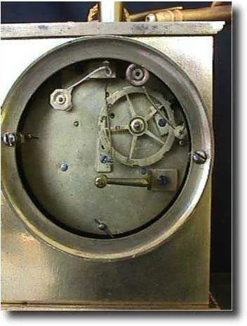 This is a French figural dore bronze mantle clock with 8 day count wheel bell strike movement with a silk thread pendulum suspension. It has a white c...