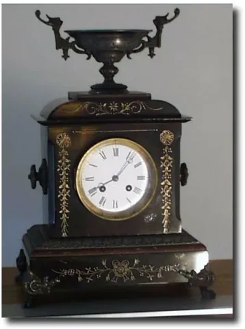 Case: Cast iron case with enamel finish. 16" tall Works: Japy Freres and Cie, Gde MED. D'HONNEUR. 8 day time and strike on bell. Reference:The French ...