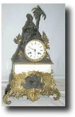 Case: White Marble and cast brass base and with female figure 16" tall .Girl under tree with bird nest in hand; beveled glass dial Works: S. Marti et ...