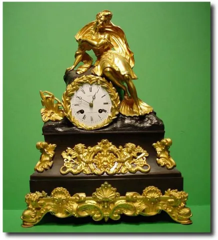 French First empire gilt ormolu and bronze mantel clock, Circa 1830