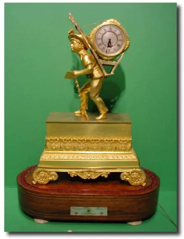 A First Empire Musical gilt ormolu French figural timepiece Mantel Clock by "Alibert", Paris. The timepiece movement with original verge escapement, d...