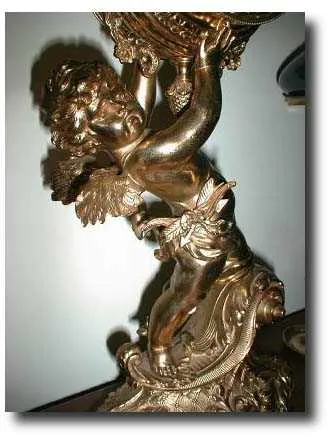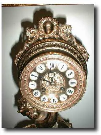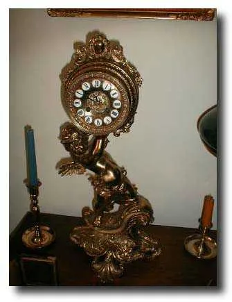 Putto or Cherub Statue Clock; brass inside movement, unsigned; bevelled glass door; 21 inches tall by 10 inches across the base; Condition: Excellent....