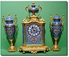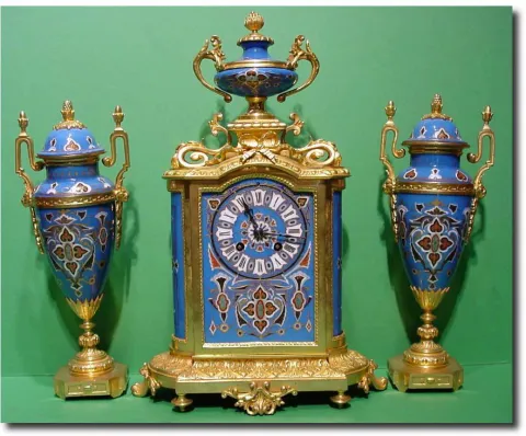 A late 19th century French gilt bronze and cloisonne enamelled three piece clock garniture. 8-day movement chiming hours and half hours on a bell. The...