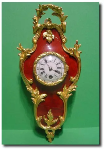 French Louis XIV style red tortoiseshell and gilt ormolu mounted miniature wall clock, Circa 1890