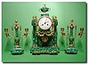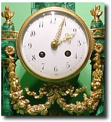French malachite- veneered chiming portico clock garniture, circa 1880