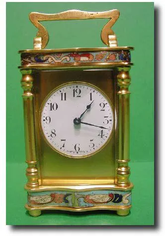 French miniature gilt bronze and champleve carriage clock timepiece, circa 1900