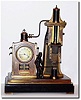 This is a nice original example with old patina. Through a complex series of linkage, the oscillating movement of the crutch is converted into the up and down movement of the hammer forge, but amazingly the forge stands 6 inches to the right of the clock, and separate from it. The forgeman is seen holding his iron piece on the anvil while the hammer makes impact. The clock is inset in a "brick' firebox and boiler, and appear to be sending steam impulses to the large steam cylinder and forge to the right. A "sister" to this clock may be seen in A Collector"s Guide to Clocks, by Derek Roberts (1992), page 103. Height 17'