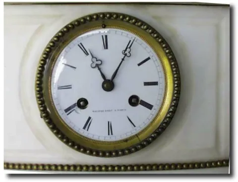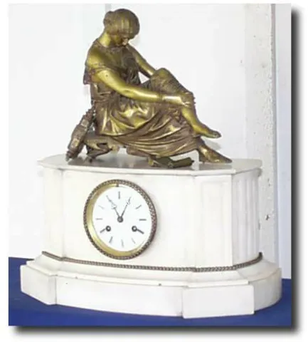 Case: White marble 17" tall, 15" wide and 7.5" deep Works: French 8 day time. Reference: The French Marble Clock by Nicolas M. Thorpe Comment: Very he...