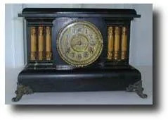 Case:Original black lacquered wood with bone-like columns. Hour strike on gong and half hour on bell. Works:8 day time and strike. Condition: Case: on...