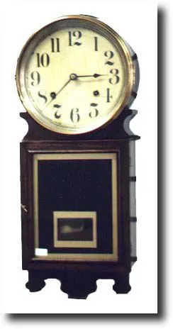 Circa 1895-1900. 8-day time and strike movement. A very unusual banjo clock. Dimensions: 16"h x 6"w x 3"d. Additional keywords: wall clock...