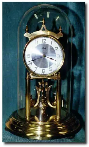 Kundo 400 day anniversary clock made about 1960 with a round metal dial. The beautiful base has been polished and lacquered. Has the full-width moveme...