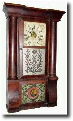 8-day weight column and cornice case; now contains a Forestville signed dial and a J.C. Brown movement. Both nice original Fenn tablets, the lower one...