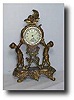Case: Cast spelter with bronze finish, porcelain dial, 9.75" tall Works:.Lever escapement with second hand 30 hour works Condition: Case - excellent, ...