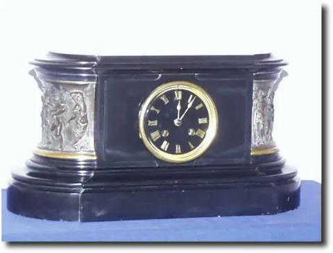 Case: Black marble 16" Wide Works: French 8 day time and strike on bell. Value: Not For Sale $ 820.00 Reference: The French Marble Clock by Nicolas M....