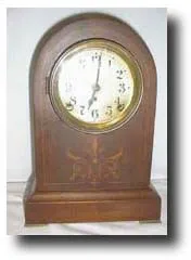 Case: Wood with inlay; The dial is pushed in a little. Works: Time and strike; Additional keywords: American...
