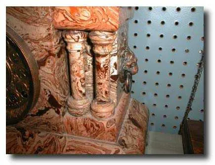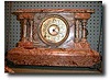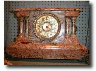 Marbleized brown adamantine laquered case; brass movement; fancy brass dial; has a clean movement which operates well and strikes once on the half-hou...
