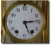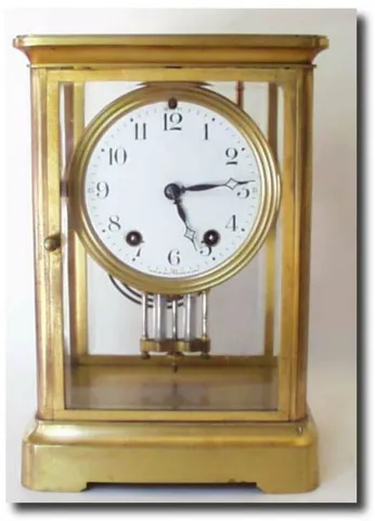 Case: Brass and bevelled glass. - 9.5" high Works: Seth Thomas 8 day brass with hour count and half hour striking on gong. Reference: Seth Thomas Cloc...