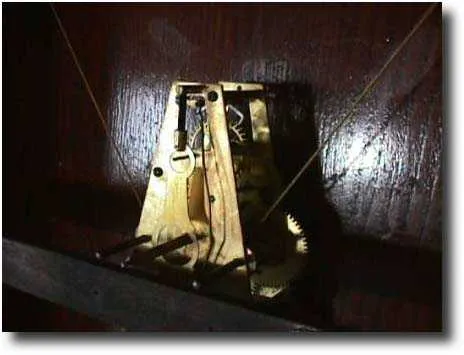 This is a fancy oak two weight time only wall regulator. It has a warm , honey colored oak finish which is in excellent condition. The clock has a 12"...