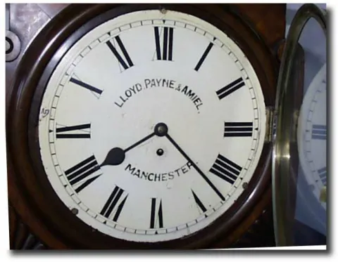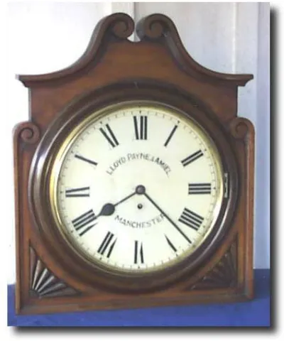 Case: Scroll top mahogany case; 21 inches high, 18" wide, 6.5 deep; dial signed by Manchester dealer. Works: Single fusee. Eight day. Condition: Case;...