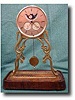Coup perdu escapement skeleton clock by Adam Thomson, London with sweep second hand, moonphase, day of week, month calender dials and maintaining powe...