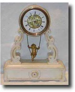 Swinging cherub clock by Farcot with striking movement in alabaster case, French c1880...