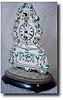 Delightful 5" miniture Zappler in porcelain with "cowtail" front pendulum and original glass dome. German c1870...