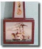 cross banded wood frames, 8 day movement with T-bridge step train movement, Philster head screws missing, old replaced zinc dial, replaced finial, gla...