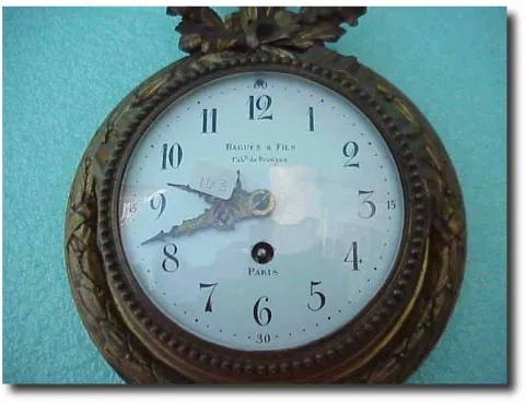 gilded brass ormolu,dial and hanger surrounded by bows, ribbons, and flowers...
