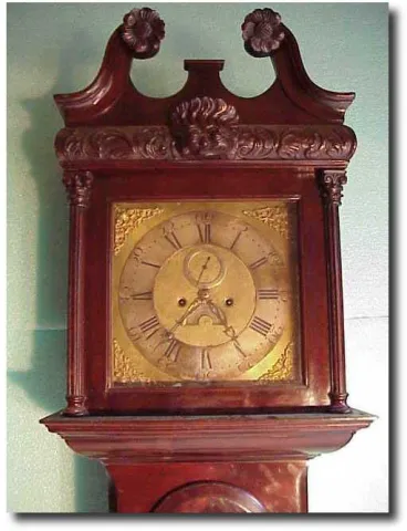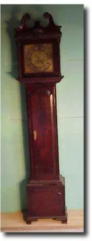 brass dial, 8 day time and strike, bracket base, carved bonnet, height 8' (no additional description available)...