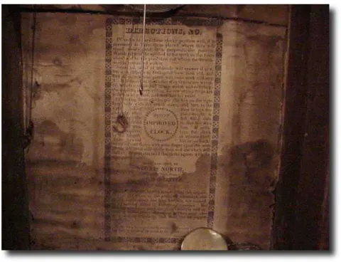 miniature with wooden works and East/West movement, crest, feet, and dial replaced...