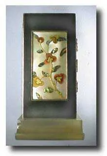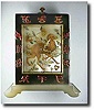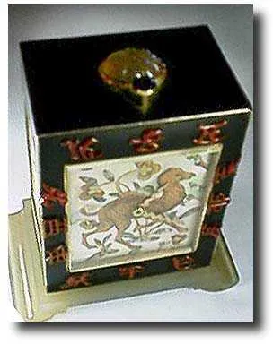 French silver gilt, lacquer, agate, and mother-of-pearl Chinese style Art Deco miniature 8-day quarter repeating antique clock, c. 1930