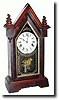 Pressed glass and brass table clock. This clock is in generally good condition; the glass tray is intact with no cracks, but the inner hole has some s...